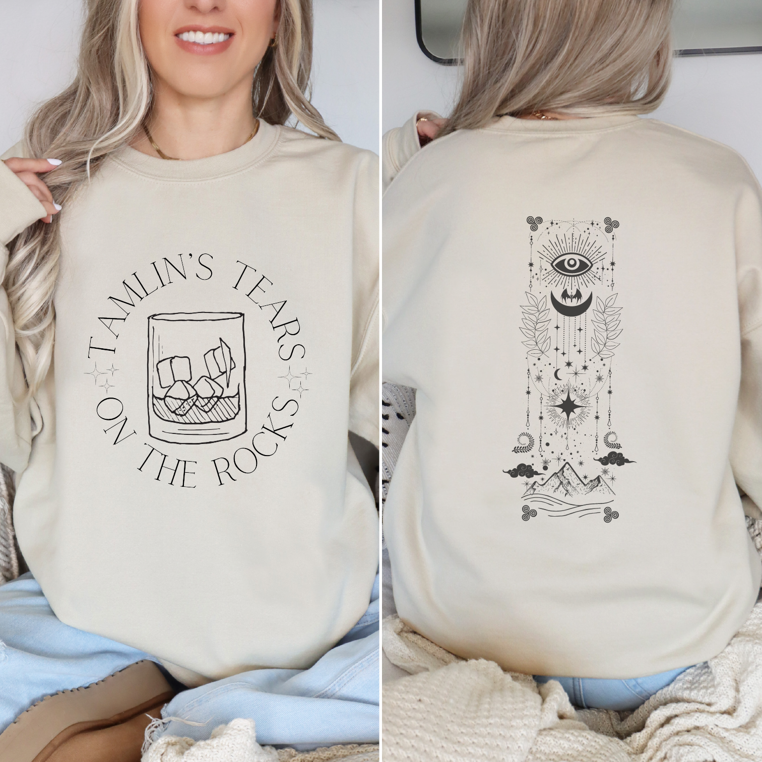 The Tamlin's Tears On The Rocks Acotar Inspired Gildan Sweatshit boasts long sleeves and a crew neck, providing you warmth on chilly days. It has an unisex fit so anyone can rock it comfortably. Plus that back print is just chef's kiss.